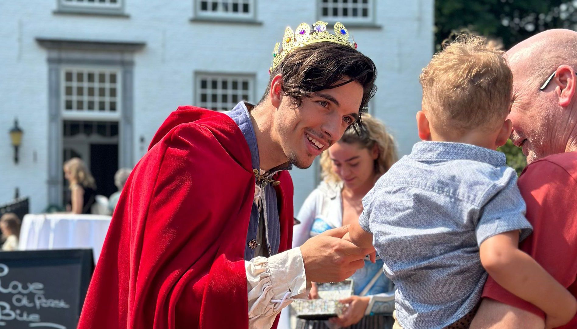 We nemen je een middag mee in ons magische sprookjesavontuur voor jong en oud. Onze betoverende Sprookjeslunches vinden plaats op de mooiste locaties, zoals kastelen en landgoederen. Om 12.00 uur begint de middag en gaan we samen lunchen. Als ieders bordje leeg is, begint het avontuur, gevuld met magie. Gezamenlijk toveren we het toveren we het toetje. Na het toetje is er tijd voor een fotomomentje en rond 14.00 uur eindigt de Sprookjeslunch. Alle kinderen krijgen een Sprookjesdiploma met de handtekeningen van de Sprookjeshelden die er die middag bij zijn mee naar huis.
